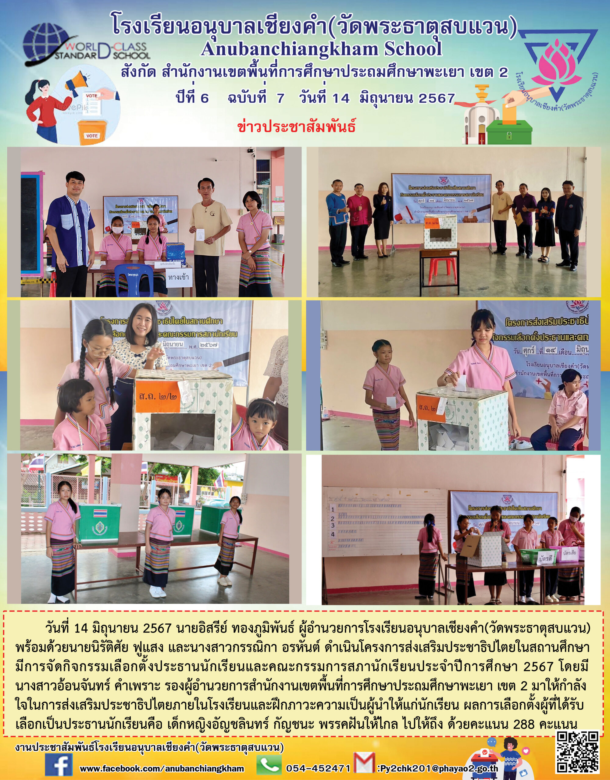 กิจกรรมการแลกเปลี่ยนเรียนรู้การดำเนินงานพัฒนาโรงเรียนคุณภาพ และการประชุมปฏิบัติการ การเขียนรายงานเพื่อเสนอ ขอรับประเมินรางวัลคุณภาพ ScQA โรงเรียนมาตรฐานสากล สำนักงานเขตพื้นที่การศึกษาประถมศึกษาพะเยา เขต 2 และถอดบทเรียนการดำเนินงานพัฒนาโรงเรียนมาตรฐานสากลของโรงเรียนอนุบาลเชียงคำ(วัดพระธาตุสบแวน)