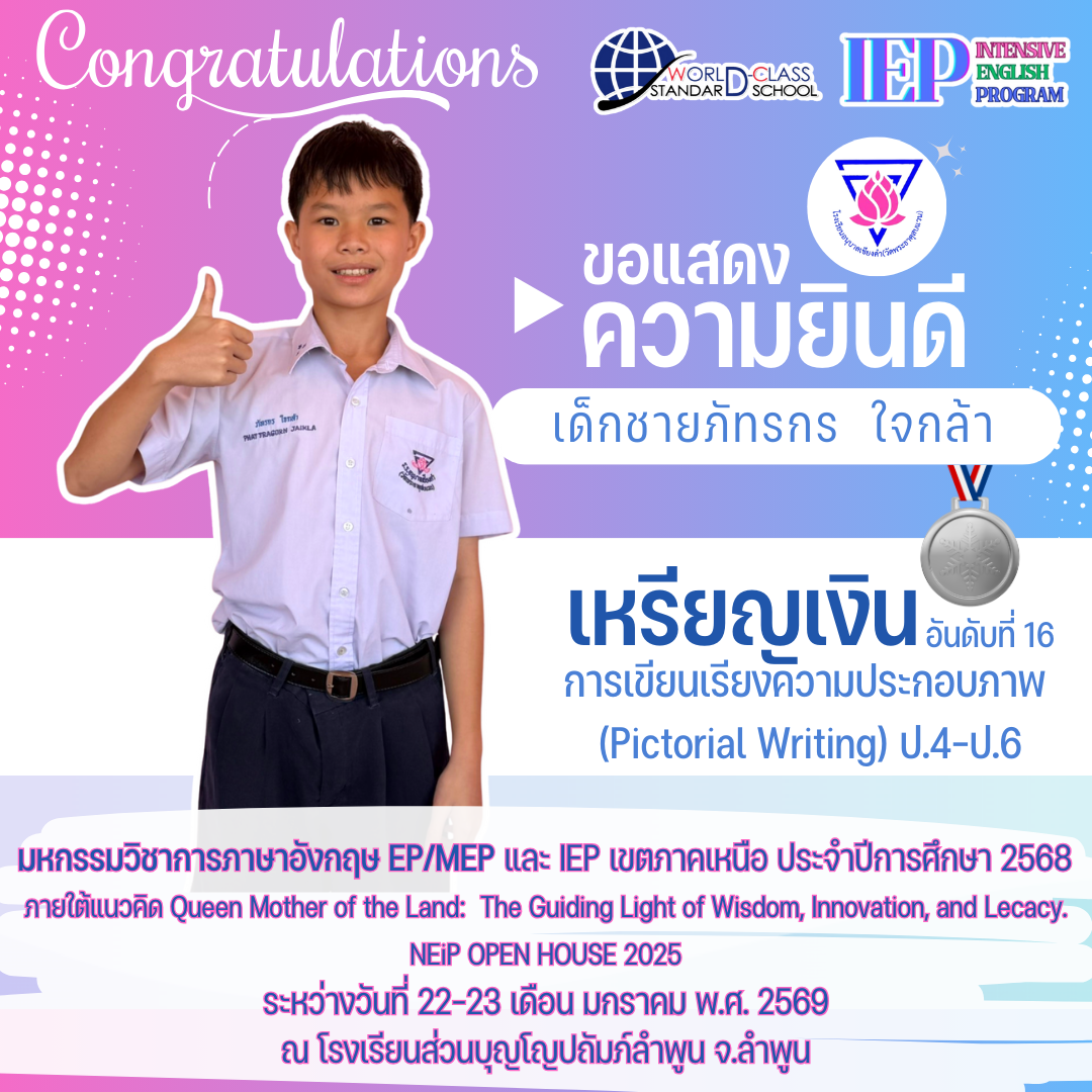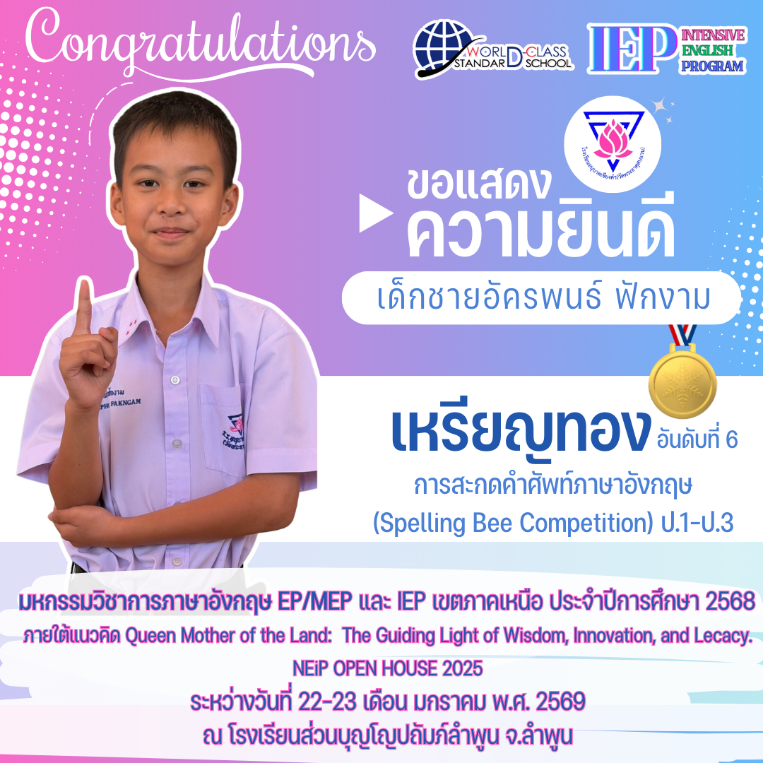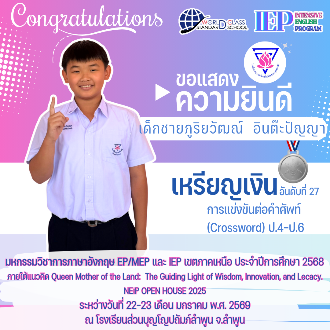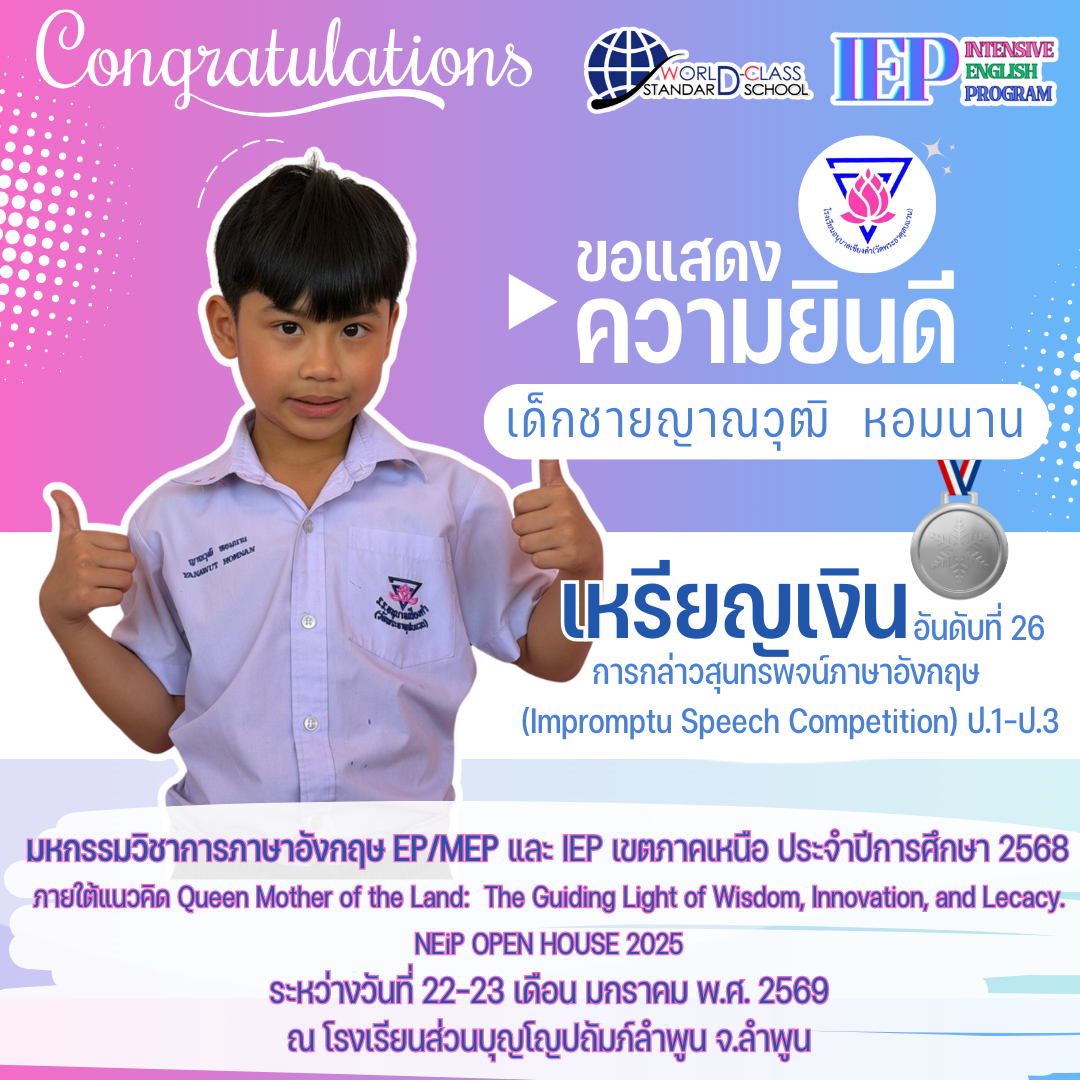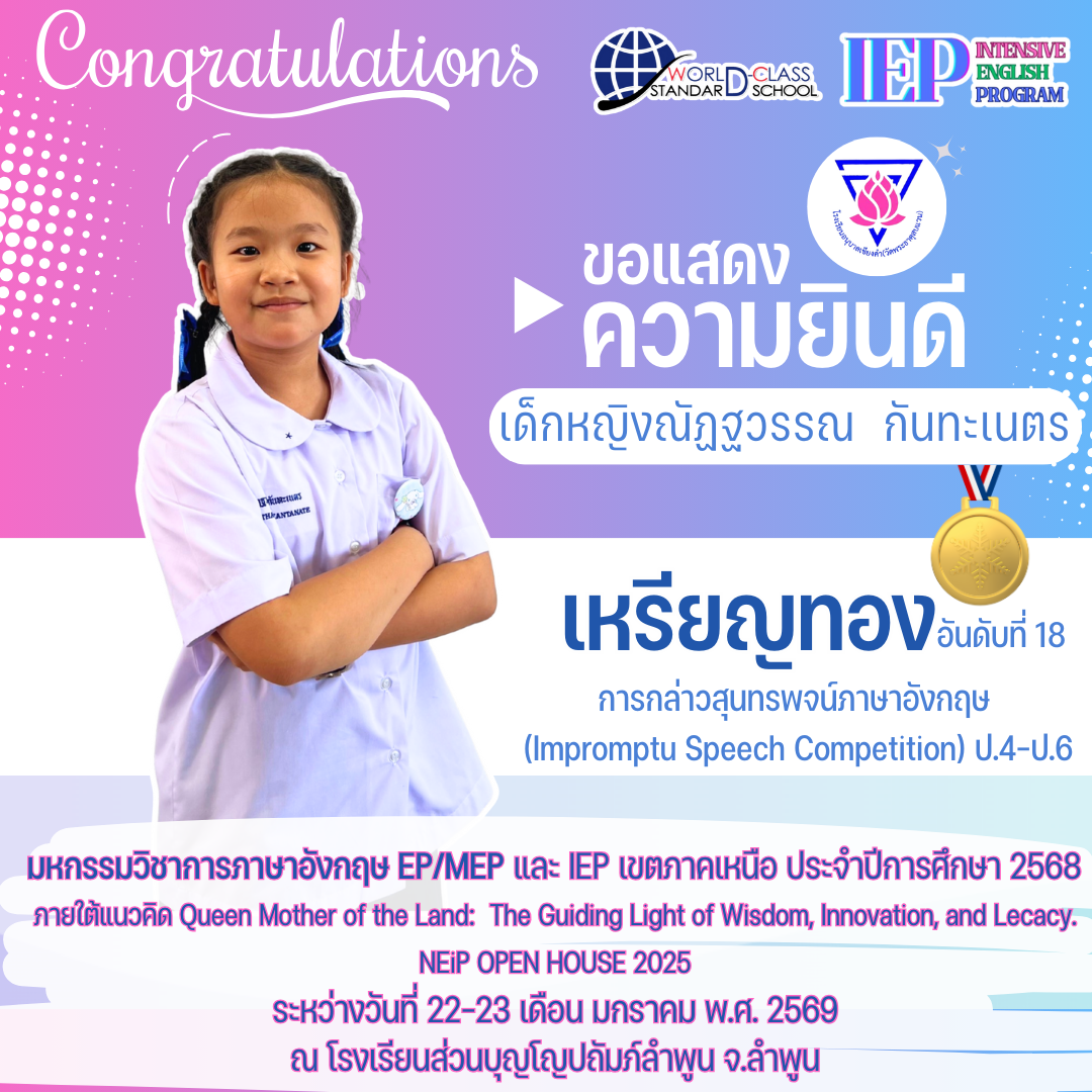 ผลการแข่งขัน มหกรรมวิชาการภาษาอังกฤษ EP/MEP และ IEP เขตภาคเหนือ ประจำปีการศึกษา 2568